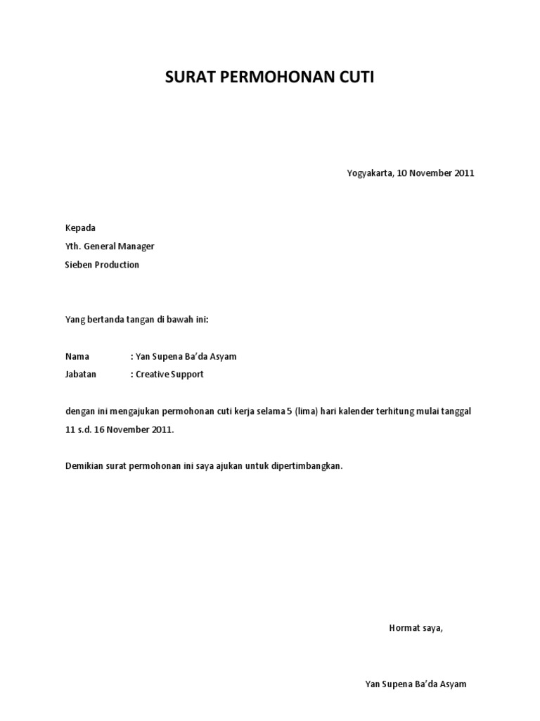 Hal ini karena persiapan pernikahan tidak bisa selesai hanya dalam satu hari, banyak yang perlu diurus sebelum. Hukumonline com ulasan lengkap ketentuan cuti melahirkan. Surat permohonan sendiri dapat bersifat resmi atau pun tidak resmi. Contoh surat permohonan pindah tugas. Kumpulan contoh surat permohonan untuk kerjasama, rekomendasi, bantuan dana, permohonan maaf, beasiswa atau keperluan yang lain dengan penulisan yang baik dan benar.